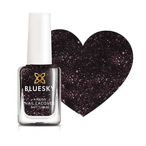 Bluessky Kids Nail Varnish - Starry Night, Black Glitter. Lätt skal-off, giftfri, vattenbaserad, odourfri nagellack för barn, 5 ml