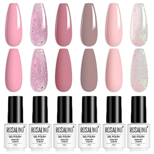 ROSALIND 6 Färger UV Gel Nagellack Set, Rosa Glitter Vit Gellack, Gel Nail Polish Kit, UV Gel Shellac Nail Polish för DIY Nail Art Nail Design 6PCS