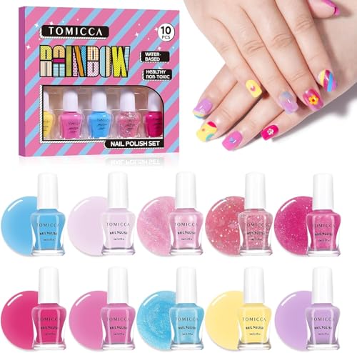 TOMICCA barn nagellack set 10 färger giftfri luktfri peel off aqua nagellack snabb torr nagellack gåvor kit för flickor