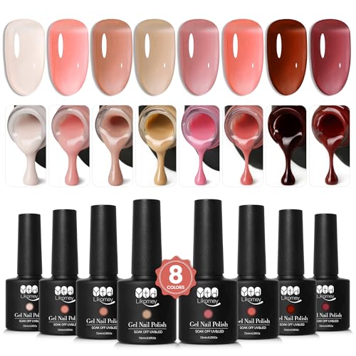 YTD Likomey UV LED Gel-lack Nagellack Set,8 Färger Rosa Röd Kollektion Genomskinlig Natur Gelé Blötlägg Av UV LED Alla hjärtans dag Gel Nagellack Kit,7.5ml 8 flaskor