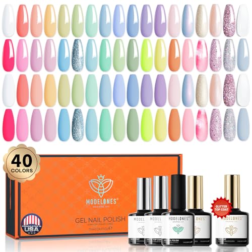 Modelones 40 st gel nagellack, 36 st Pastell Dream Collection Macaron Glitter. Pastellfärgat sommar Soak Off gel nagellack, 4 pack bas nagel primer i matt glansig toppbeläggning.