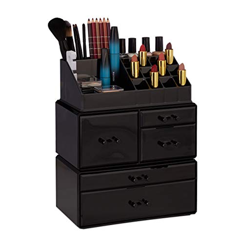 Relaxdays organiserare med 21 fack, kosmetiskt torn för läppstift, nagellack, sminkbricka, svart, 1-pack