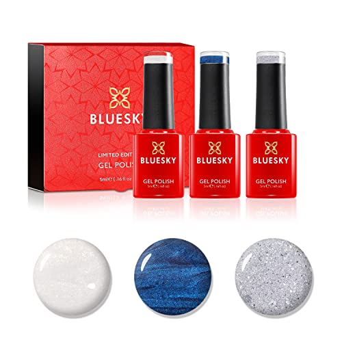 Blusky gel nagellack, pistolmetaller, öppet onyx 80540, Steel Gaze 80560, grus A029, 3 x 5 ml, grå, silver, svart (kräver curying UVDER UV, LED LED lampa)