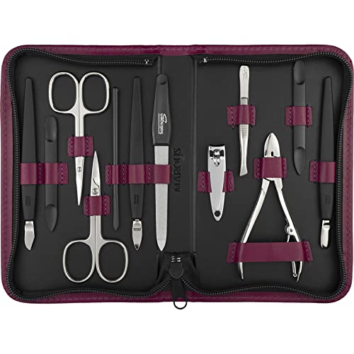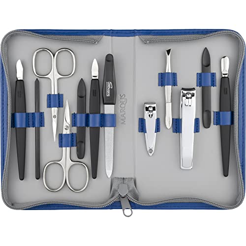marQus Solingen Mega Manikyrset - 12-delars nagelset för män och kvinnor. Allt du behöver för manikyr och pedikyr i ett högkvalitativt äkta läderfodral