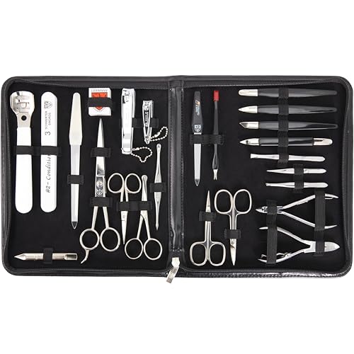 Tre svärden– Tyskland 23 delar Mega manikyrset "Varese" nagelset fodral i konstläder svart | Innehåll: Nagelsax, nageltång, hårsax, nagelklippare och mycket mer!