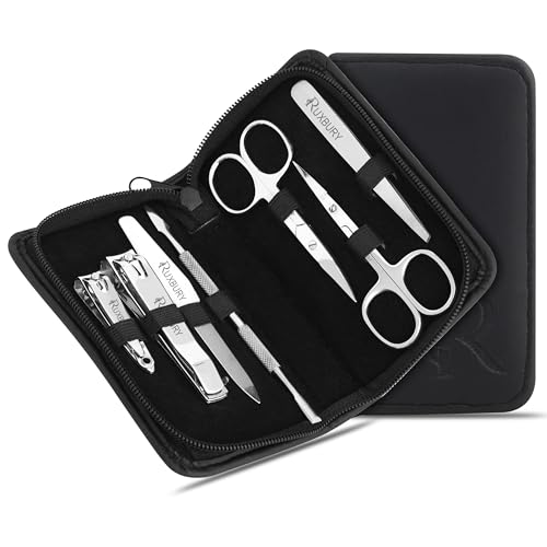 Ruxbury 7 stycken manikyrset pedikyrset rostfritt stål nagelsax set för kvinnor och män nagelset förpackad med läderväska