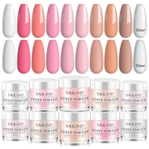 Saviland akrylpulver för naglar – 10 färger akryl nagelset slät akryl pulver naglar professionell akryl pulver naglar för nagelförlängning akrylnaglar akrylpulver akrylpulver (ingen nagellampa krävs)