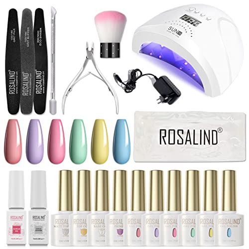 ROSALIND UV-nagellackset med UV-lampa 48W nagelset gelnaglar startset komplett 6 färger 10ml gel nagellack och basmatt topplack nagelkonst gel kit
