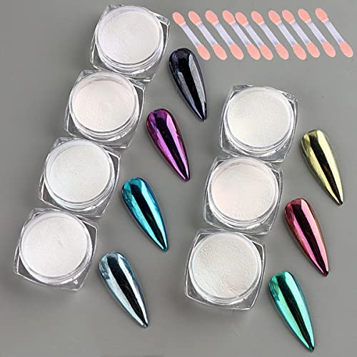 7 lådor Krom Nagelpulver Pearl Shell Holografisk Sparkle Nail Glitter Pulver Set Doppning för naglar Manikyr Spegel Guld Blå Rosa Lila Nageldamm