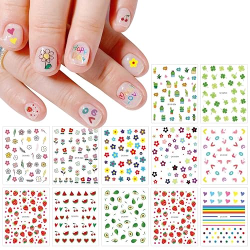 JMEOWIO Barn Nagelklistermärken 10 Ark Nagel Klistermärken Nail Art Sticker Dekaler Självhäftande Nagelkonst Dekoration Naglar Tillbehör