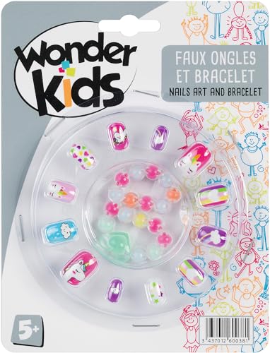 Wonder Kids falska naglar och armband för barn, manikyrset med pärlor, sminkleksak, 5 år och uppåt