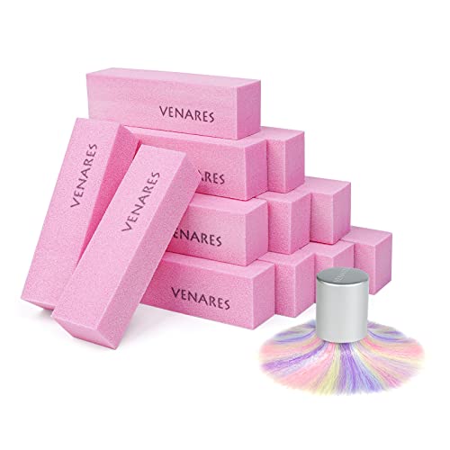 Buffert för naglar, Venares 12 stycken buffertblock för naturliga naglar, buffert för naglar korn 120, rosa slipblock, buffert för gelnaglar, nagelpolerblock, buffert med borste