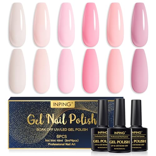 INPING Halvpermanent nagellack för rosa naglar, 6 färger, naken, rosa, söt kärlek,alla hjärtans dag, set med UV-gelnagellack, kamelia, ljusrosa, pastell, naken gel, gel för gör-det-själv, 8 ml