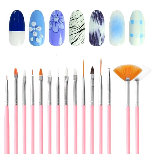 KQDRAVINE 15-delad borste för gelnaglar, nagelpensel, nagelkonst penselset, gelpensel för naglar, rosa nagelborste, lämplig för gör-det-själv-nagelstudior och nagelkonst penselset för hemmet