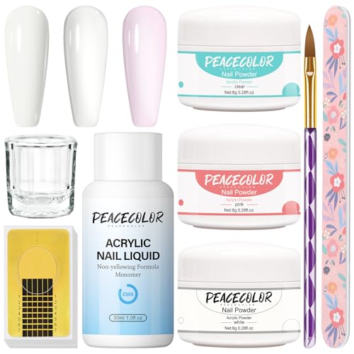 PEACECOLOR akrylnagelset, 3 färger akrylpulver naglar klar rosa vit akrylpulver och akrylvätska nagelset akrylnagelset akrylnagelset nagelset nybörjare akrylpulver startset