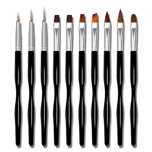 Nail Art Borstar Set, 10st Nageldesign Målning Borstar, Professionella Nail Art Design Borstar, Nail Fine Liner Borstar, Svart