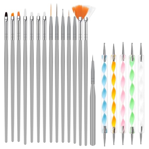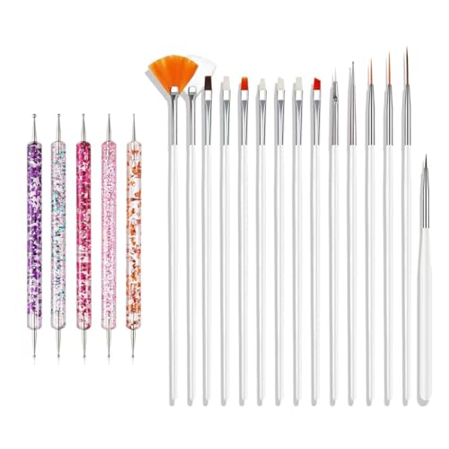URAQT Nail Art Penslar Set, 15 st akryl nagelpenna målarpenna och 5 st Nail Dotting Tools Kit, Nagelpenna Kit Nail Art målardesigner för gör-det-själv & professionell användning