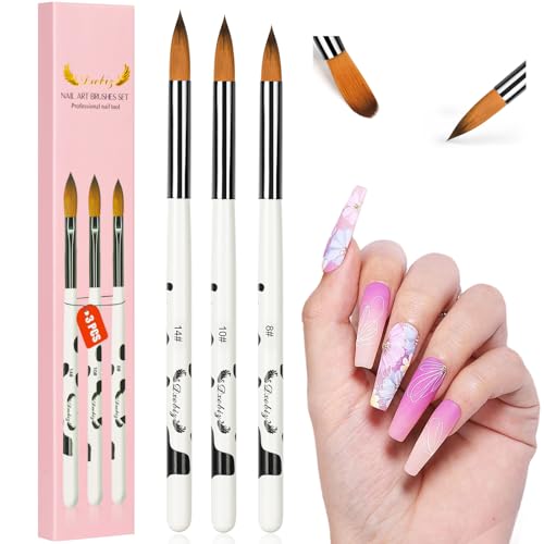 URAQT 3ST Akryl Nagelborste, Nail Art Borstar Set, Nail Art Pens Nail Art Tips Builder Brush, Professionell Manikyr Borrritningsborste Nail Art Verktyg för DIY Nail Art Designs, Vit
