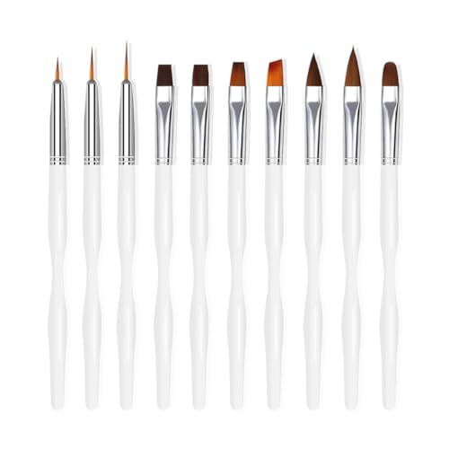 Nail Art Borstar Set, 10st Nageldesign Målning Borstar, Professionella Nail Art Design Borstar, Nail Fine Liner Borstar, Vit