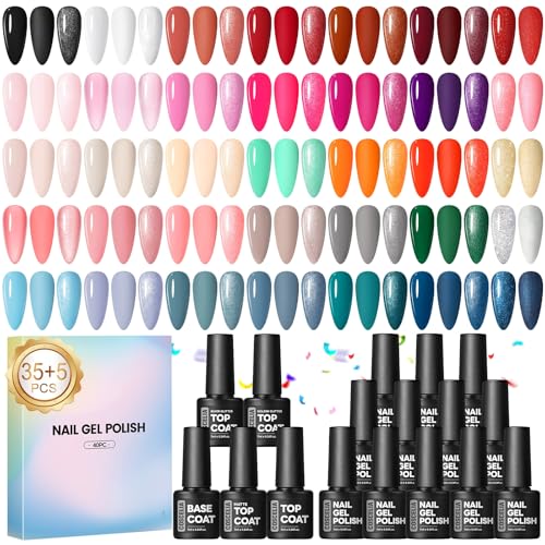 COSCELIA UV Nagellack Set, 35 Färger Gel Nagellack med baslack, Glansig och matt överrock, Silver & Gold Glitter Top Coat Startset för Gel Naglar DIY Nail Art Set