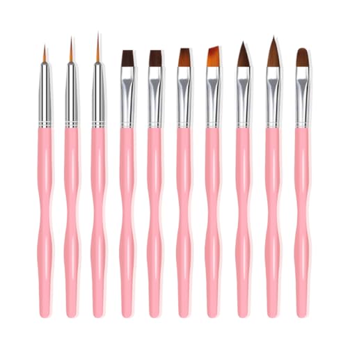 Nail Art Borstar Set, 10st Nageldesign Målning Borstar, Professionella Nail Art Design Borstar, Nail Fine Liner Borstar, Rosa