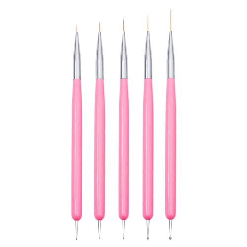 Nail Art Borstar, 5st Nail Art Liner Penslar, Dotting Pen Tools, Painting Art Design Brush Set för långa linjer, tunna detaljer, fina ritningsstorlekar 7/9/11/15/22mm, Rosa