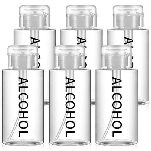Layhit 10 oz Alcohol Pump Dispenser Bottle Alcohol Dispenser Push Down Liquid Dispenser Clear Empty Pumping Bottle Refillable Cosmetic Container for Personal, Salon, Nail Care, Hospital Use(6 Pcs)