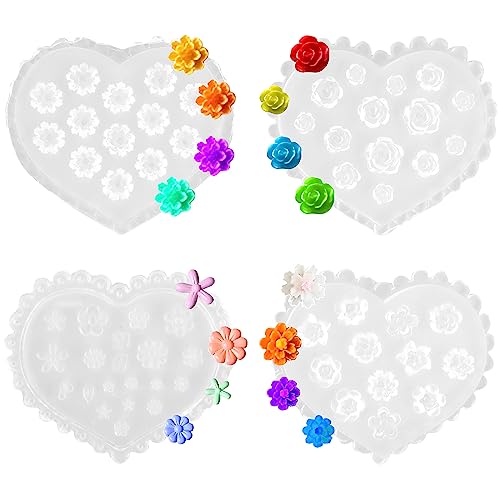 Amaxiu Pack of 4 Flower Polymer Clay Forms, Roses Daisy Flowers Silikon Miniatyr 3D-präglade lerformar för örhängen Smycken Att göra Nail Art Cupcake Handgjorda DIY
