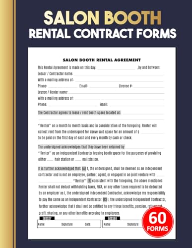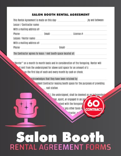 Salon Booth Rental Contract Forms: 60 Beauty Business Chair Lease Agreement Forms for Hair Stylists, Nail Technicians, Estheticians, & Barbers | 120 Single-Sided Pages