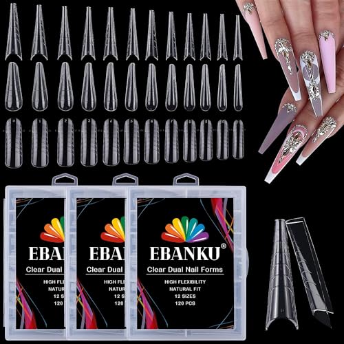 EBANKU 360 st Clear Dual Nail Forms System, 3 Former Dual Nail System Akryl Heltäckande Poly Nagelform Tips för Gel Nail Extension, 12 Storlek med Skala Nails Manikyrverktyg