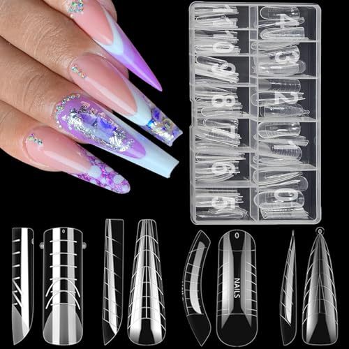 EBANKU 288PCS Clear Dual Nail Forms System Heltäckande Nagelformsspetsar Akryl Nagelförlängningsverktyg för Nail Art Salon Nageldesign (12 Stilar)