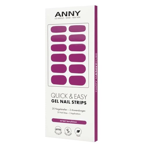 ANNY Gel Nail Strips – UV nagelfolie för fastsättning med UV-lampa, hållbar och okrossbar, enkel användning, färg: bärnsten – fyllig lila – nr 41