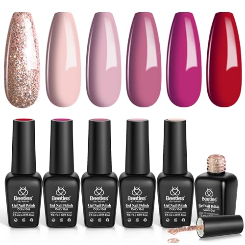 Beetles Rose röd guld naken nagellack set – 6 färger UV nagellack prinsessa charmig gel nagellack set starter nail nagellack design gåva torr gel för kvinnor nybörjare nagelkonst 7,5 ml