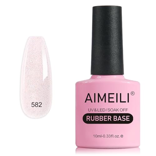 AIMEILI Rubber Base Gel för naglar, Sheer Color Gel Nail Polish UV LED Soak Off, Elastic Rubber Base Coat Nail Strengthener Nail Rhinestones Glue Gel, Long Lasting - (582) 10ml