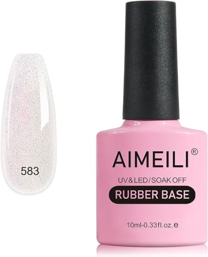 AIMEILI Rubber Base Gel för naglar, Sheer Color Gel Nail Polish UV LED Soak Off, Elastic Rubber Base Coat Nail Strengthener Nail Rhinestones Glue Gel, Long Lasting - (583) 10ml
