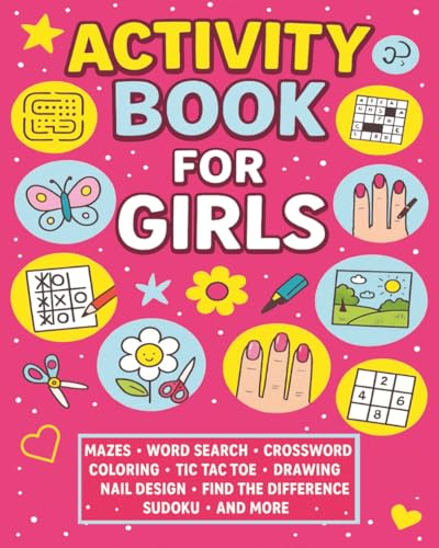 Activity book for girls: all in one puzzles book | Mazes | Word search| Crossword| Coloring | Tic tac toe | Drawing | cut & glue | nail design | find the difference | sudoku | and more