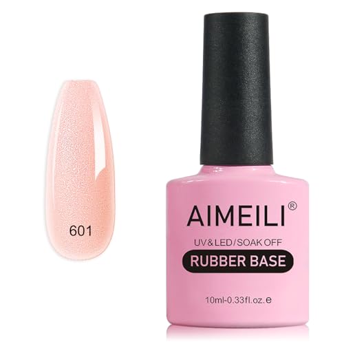AIMEILI Rubber Base Gel för naglar, Sheer Color Gel Nail Polish UV LED Soak Off, Elastic Rubber Base Coat Nail Strengthener Nail Rhinestones Glue Gel, Long Lasting - (601) 10ml