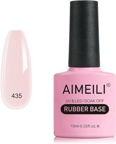 AIMEILI Rubber Base Gel för naglar, Sheer Color Gel Nail Polish UV LED Soak Off, Elastic Rubber Base Coat Nail Strengthener Nail Rhinestones Glue Gel, Long Lasting - (435) 10ml