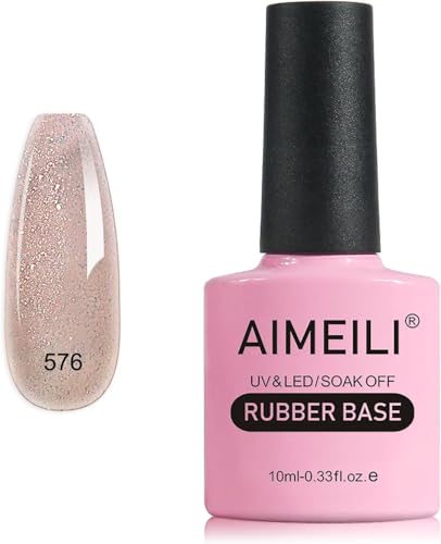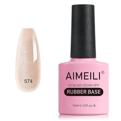 AIMEILI Rubber Base Gel för naglar, Sheer Color Gel Nail Polish UV LED Soak Off, Elastic Rubber Base Coat Nail Strengthener Nail Rhinestones Glue Gel, Long Lasting - (574) 10ml