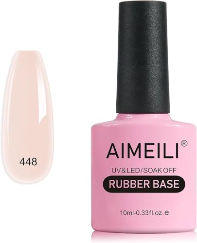 AIMEILI Rubber Base Gel för naglar, Sheer Color Gel Nail Polish UV LED Soak Off, Elastic Rubber Base Coat Nail Strengthener Nail Rhinestones Glue Gel, Long Lasting - (448) 10ml