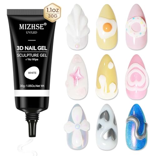 MIZHSE Nagelgel för 3D-skulptering, 30 g, vit strass, limgel för 3D-nagelkonst, Carving Nail Glue Gel UV, 5D-präglat godisgel för gör-det-själv-nageldesign och nagelmodellering i hemmet