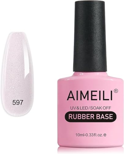 AIMEILI Rubber Base Gel för naglar, Sheer Color Gel Nail Polish UV LED Soak Off, Elastic Rubber Base Coat Nail Strengthener Nail Rhinestones Glue Gel, Long Lasting - (597) 10ml