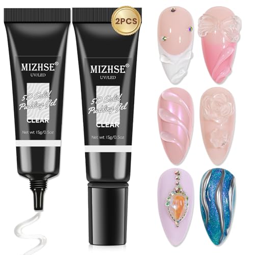 MIZHSE Nagelgel för 3D-skulptering, 15 g, 2 st., klar strass, limgel för 3D-gelnagelkonst, Carving Nail Glue Gel, 5D-präglat godisgel för gör-det-själv-nageldesign och nagelmodellering i hemmet