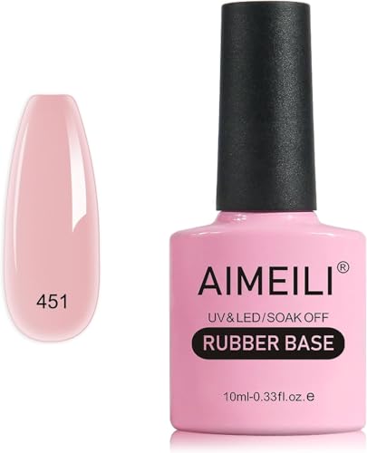 AIMEILI Rubber Base Gel för naglar, Sheer Color Gel Nail Polish UV LED Soak Off, Elastic Rubber Base Coat Nail Strengthener Nail Rhinestones Glue Gel, Long Lasting - (451) 10ml