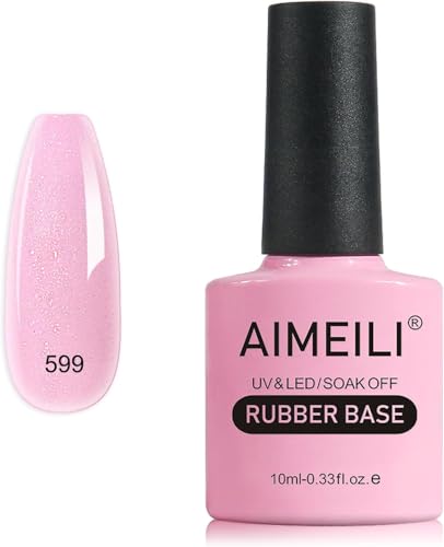 AIMEILI Rubber Base Gel för naglar, Sheer Color Gel Nail Polish UV LED Soak Off, Elastic Rubber Base Coat Nail Strengthener Nail Rhinestones Glue Gel, Long Lasting - (599) 10ml