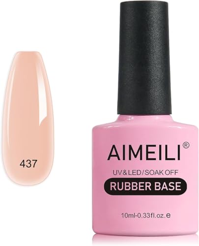 AIMEILI Rubber Base Gel för naglar, Sheer Color Gel Nail Polish UV LED Soak Off, Elastic Rubber Base Coat Nail Strengthener Nail Rhinestones Glue Gel, Long Lasting - (437) 10ml