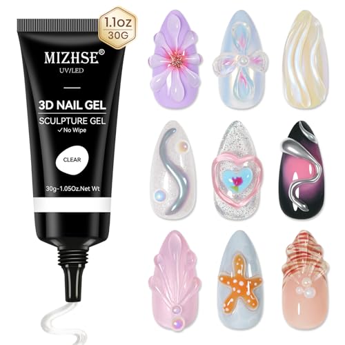 MIZHSE 30 g klar 3D skulptur nagelgel strass lim för 3D gel nail art nail carving nail glue UV 5D präglad godisgel gör-det-själv nageldesign skulptering
