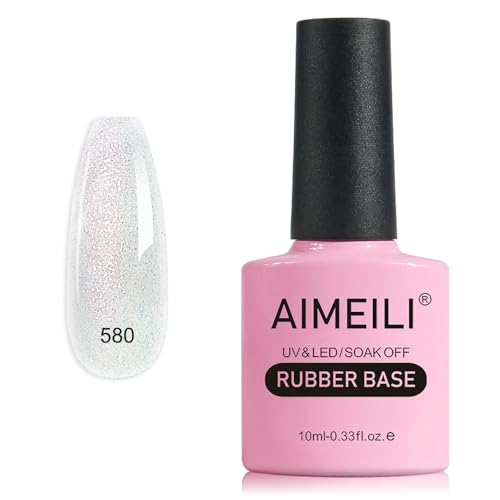 AIMEILI Rubber Base Gel för naglar, Sheer Color Gel Nail Polish UV LED Soak Off, Elastic Rubber Base Coat Nail Strengthener Nail Rhinestones Glue Gel, Long Lasting - (580) 10ml