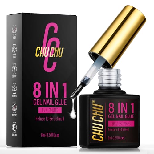 Nagellim gel konstgjorda naglar 8 i 1: CHUCHU UV nagellack Base Coat, Nail Glue extra stark för limning av press på nails, nageltips, falska naglar, konstgjorda naglar, 8 ml
