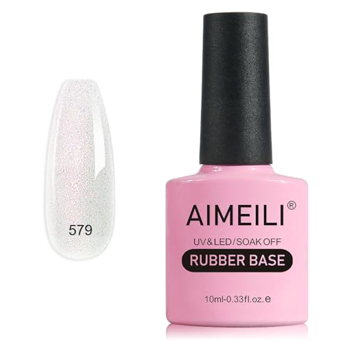 AIMEILI Rubber Base Gel för naglar, Sheer Color Gel Nail Polish UV LED Soak Off, Elastic Rubber Base Coat Nail Strengthener Nail Rhinestones Glue Gel, Long Lasting - (579) 10ml